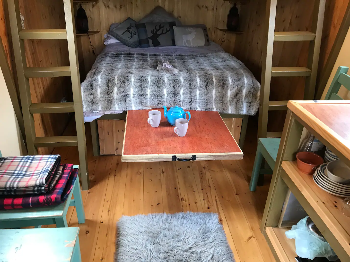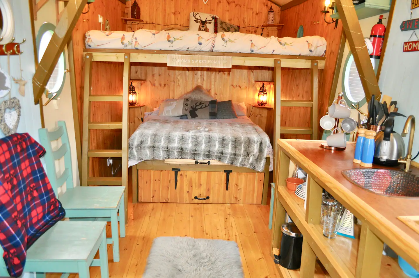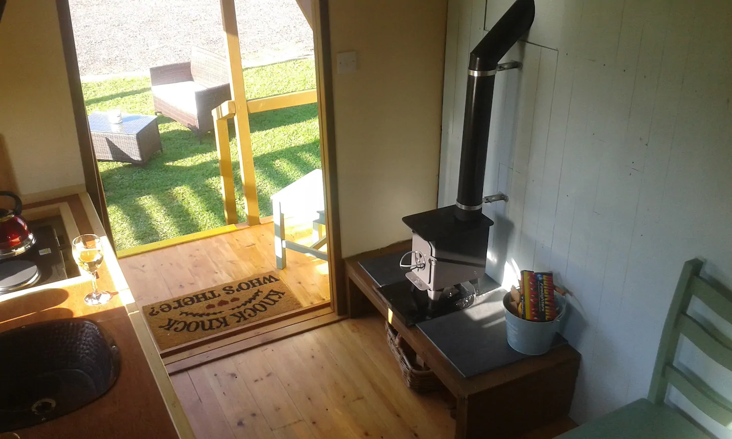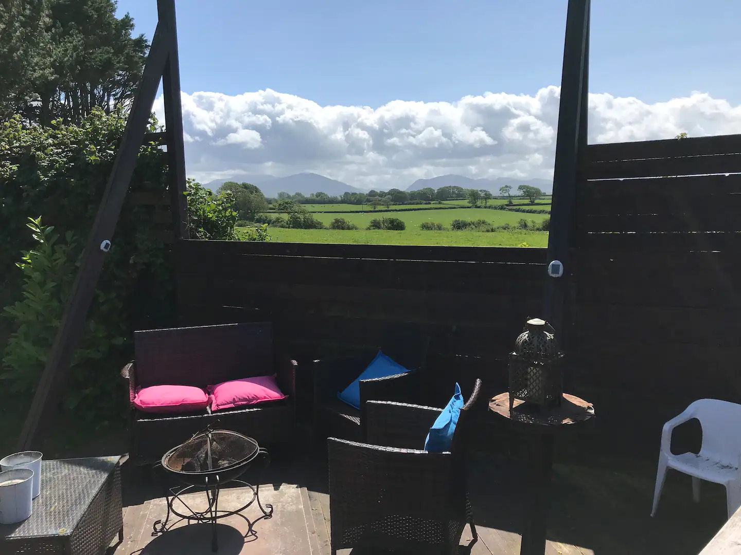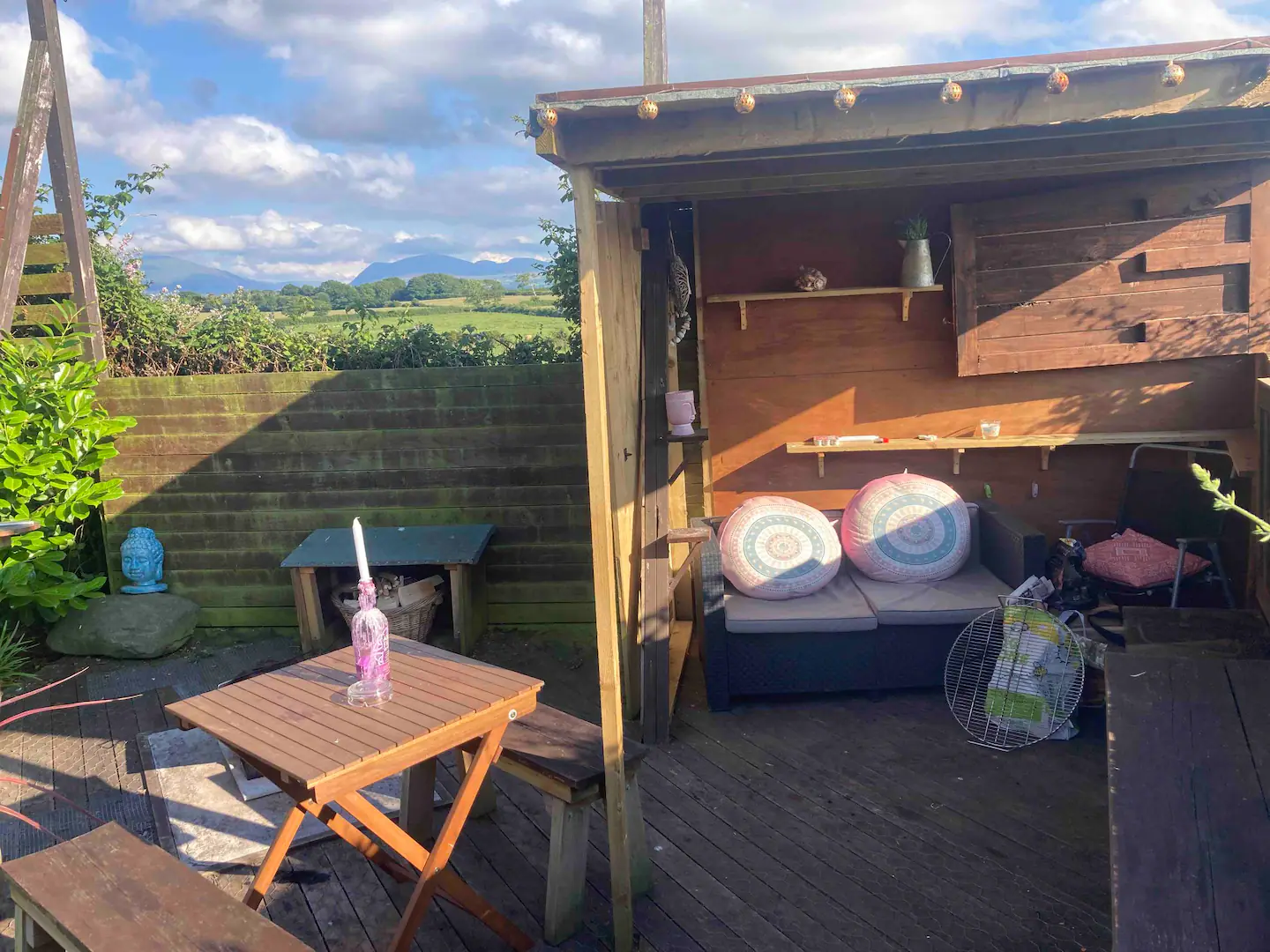 The caravan is situated in a lovely secluded paddock next to our house with views of the Snowdonia mountains and easy access to fantastic beaches and forests.